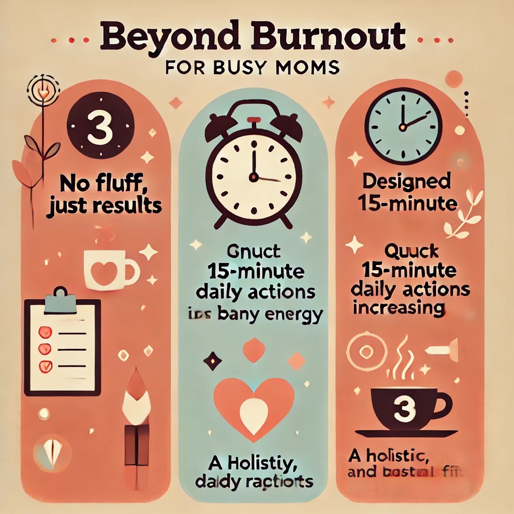 Unlike generic self-care advice, Beyond Burnout is designed for moms who don’t have time for complicated routines. Instead, you’ll get bite-sized, effective strategies that actually fit into your busy life.